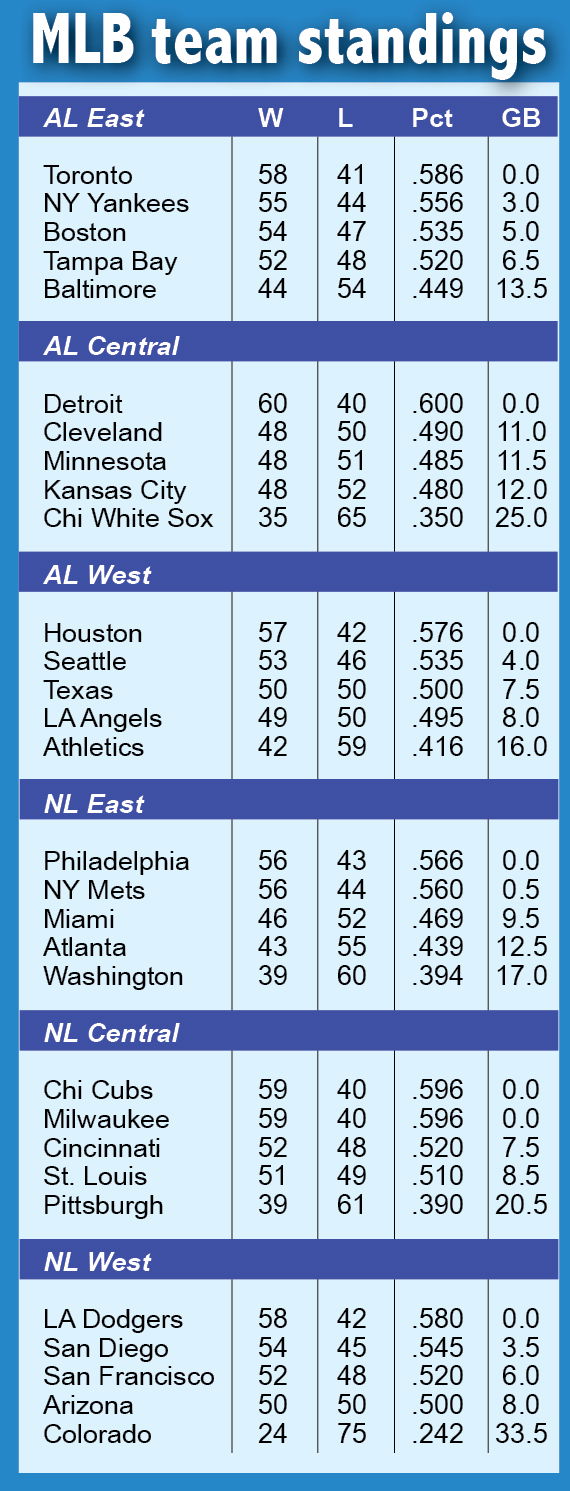 Suarez hit a three-run homer as part of a four-run first inning and added a solo home run in the third to increase his NL-leading total to 35, one more than the Dodgers’ Shohei Ohtani. Since June 1, Suarez’s 20 homers are the most in the majors.