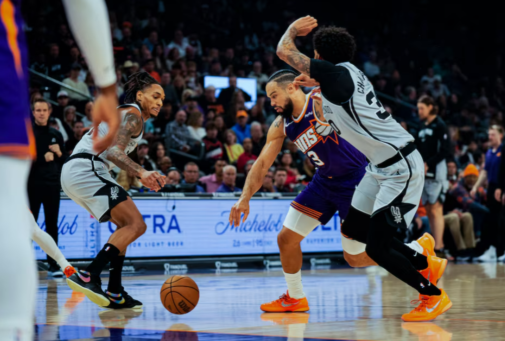 Luke Kornet, Champagnie and Jeremy Sochan penetrated the Suns’ defense with successive dunks when they took their largest lead of the game, 45-34. Vassell’s three kept the Spurs ahead 62-52 before the Suns ran off an 11-0 spurt.