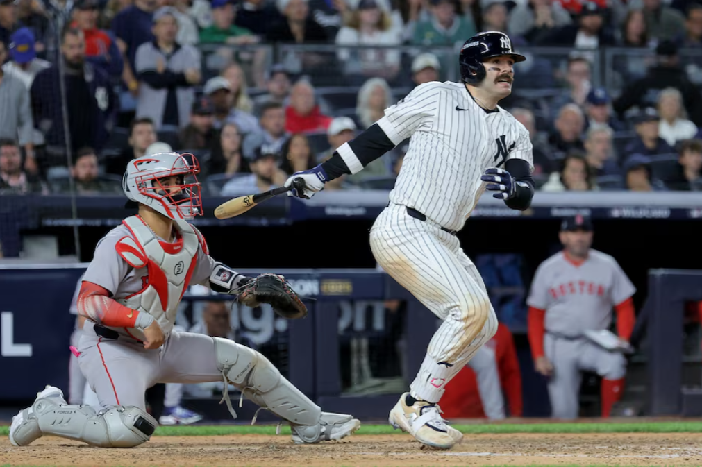 (Reuters) — Austin Wells hit a tiebreaking single with two outs in the eighth inning and the New York Yankees avoided elimination with a 4-3 victory over the Boston Red Sox in Game 2 of their American League wild-card series on Wednesday night.