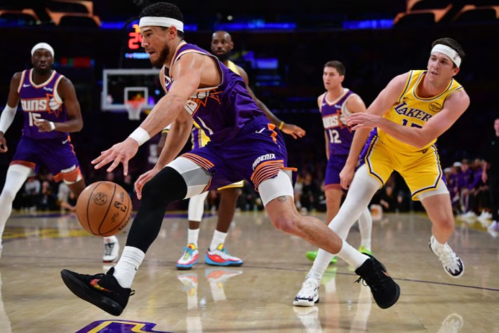 (Reuters) — Dillon Brooks scored 33 points and the Phoenix Suns overcame the loss of Devin Booker to earn a 125-108 road victory Monday that ended the Los Angeles Lakers’ seven-game winning streak.