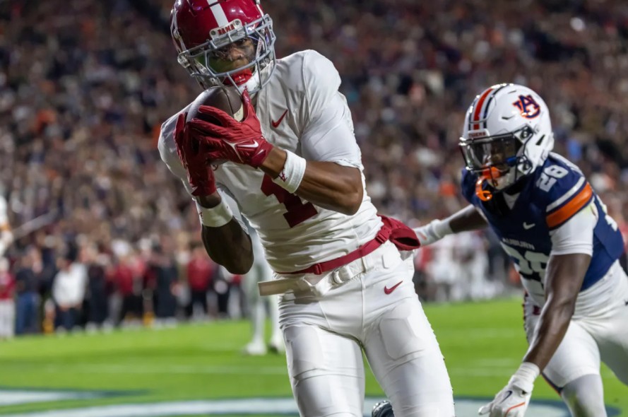 AUBURN, Ala. (AP) — Ty Simpson and Isaiah Horton connected three times for touchdowns, and No. 10 Alabama escaped Auburn with a 27-20 victory in the rivalry known as the Iron Bowl on Saturday night.