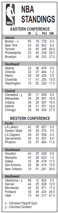 Jordan Goodwin and Dorian Finney-Smith each scored 15 points and Dalton Knecht had 13 for the Lakers, who were without LeBron James (groin) for the fifth consecutive game and Rui Hachimura (knee) for the 10th straight contest. Jaxson Hayes finished with nine points and 11 rebounds.