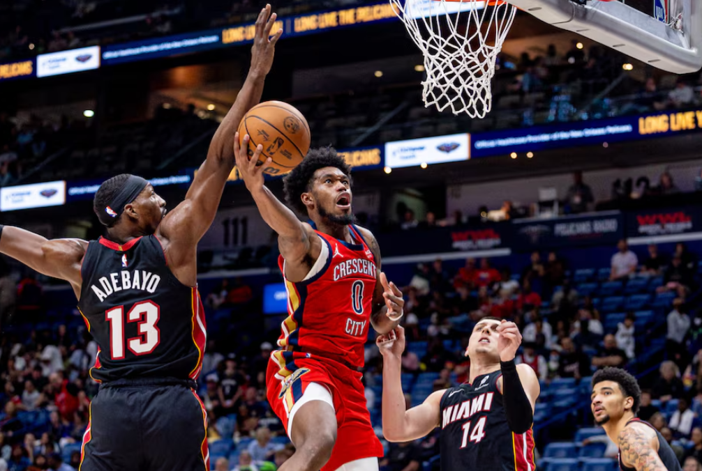 (Reuters) — Bam Adebayo and Kel’el Ware had double-doubles, eight of their Miami teammates scored in double figures and the visiting Heat made history in a 153-104 rout of the New Orleans Pelicans on Friday.