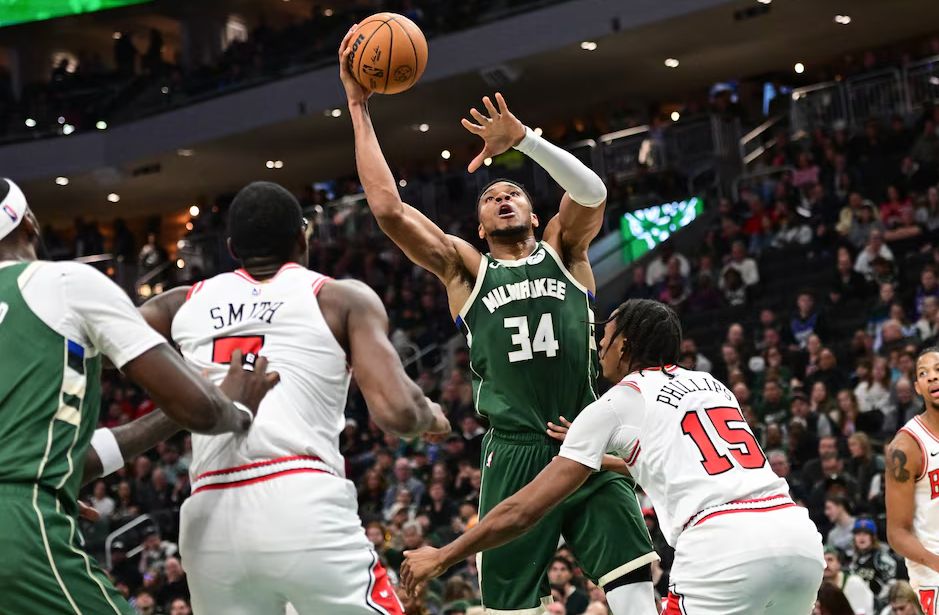 (Reuters) — Giannis Antetokounmpo scored 25 of his 41 points in the third quarter and the Milwaukee Bucks pulled away in the final minutes to beat the visiting Chicago Bulls 122-106 on Wednesday.