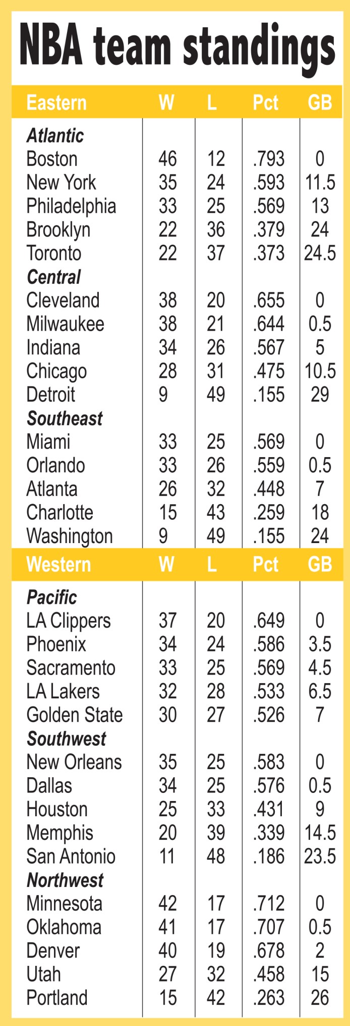 Kawhi Leonard scored 26 points and James Harden added 23 as the Clippers lost for the fifth time in their past eight games. Leonard had the chance to tie the score with seven seconds remaining, but his shot over James was short.