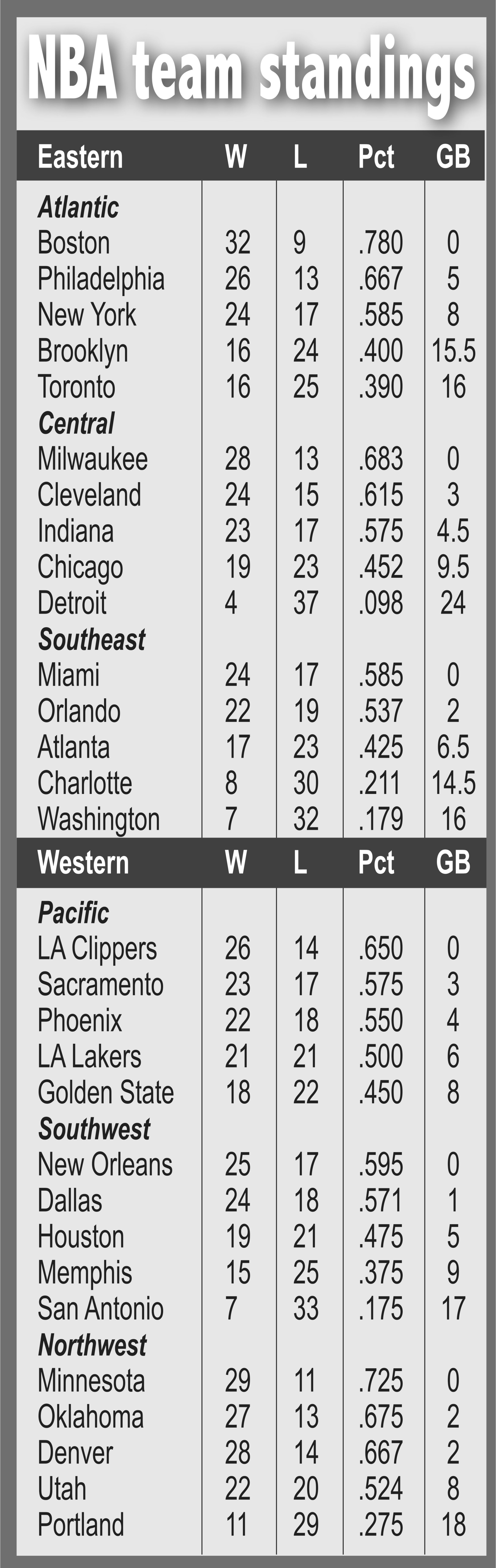 Jrue Holiday finished with 22 points and Jaylen Brown added 21 points, seven rebounds and five assists for Boston. Holiday made six of his seven shots from beyond the 3-point arc. The victory improved Boston’s home record to 20-0.