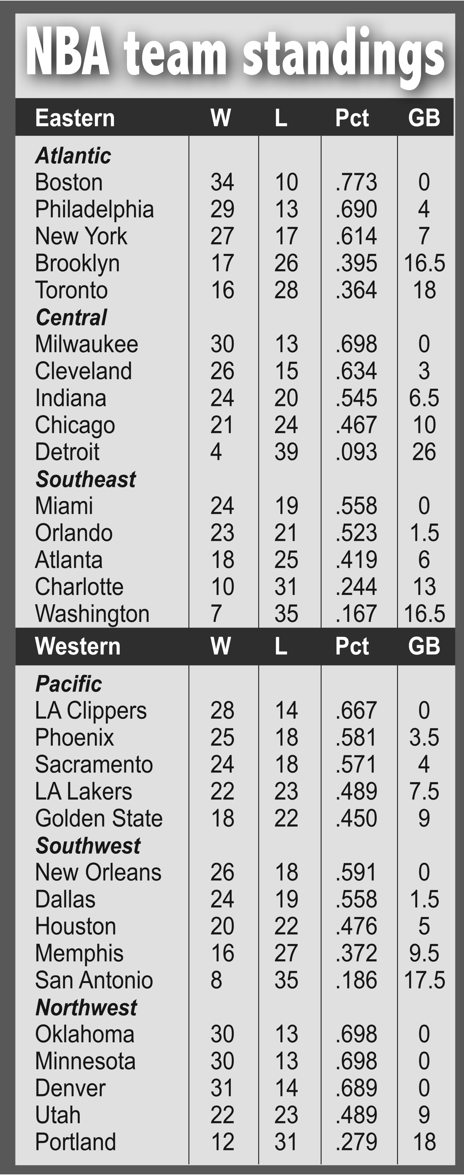 Jokic’s triple-double was his 13th of the season. Kentavious Caldwell-Pope had 14 points and Reggie Jackson scored 13 off the bench for Denver, which has won three straight, all on the road.