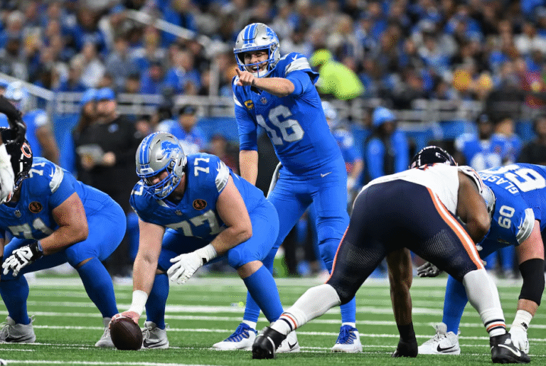 Detroit Lions quarterback Jared Goff (16) calls out signals under center against the Chicago Bears in the first quarter at Ford Field in Detroit, Michigan, Nov. 28, 2024. (Reuters) — Jared Goff connected with Sam LaPorta for two touchdowns and the Detroit Lions extended their winning streak to a fr…
