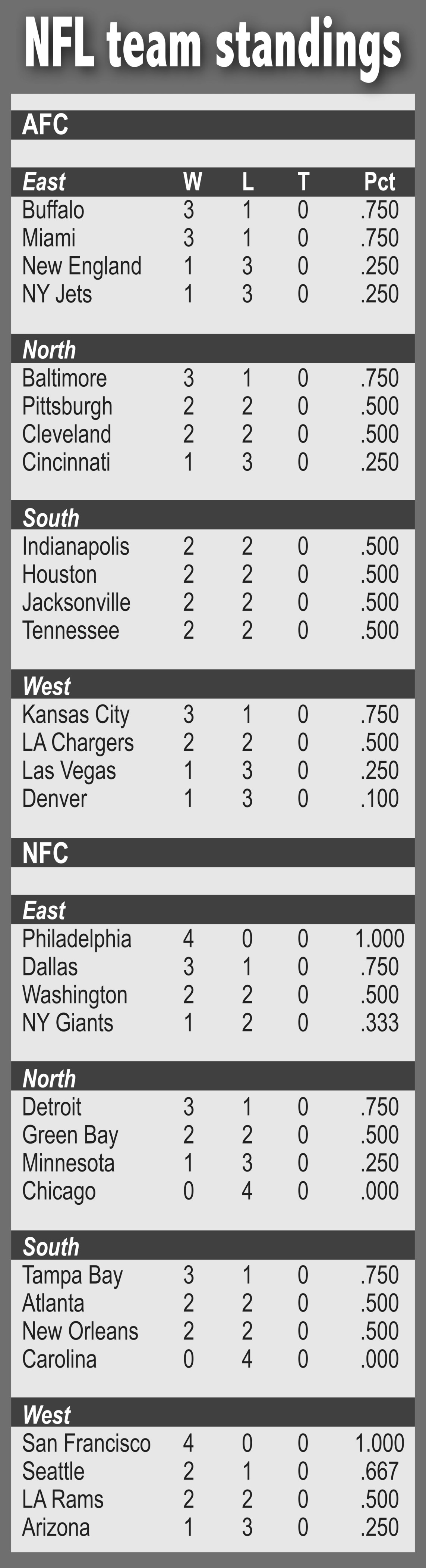 Mahomes, who became the fastest to 200 NFL touchdown passes, was 18 of 30 for 203 yards and a touchdown. He also ran for 51 yards to set the franchise’s career rushing mark for a quarterback. Isiah Pacheco rushed for 115 yards and a touchdown on 20 carries, and Kelce had six catches for 60 yards.