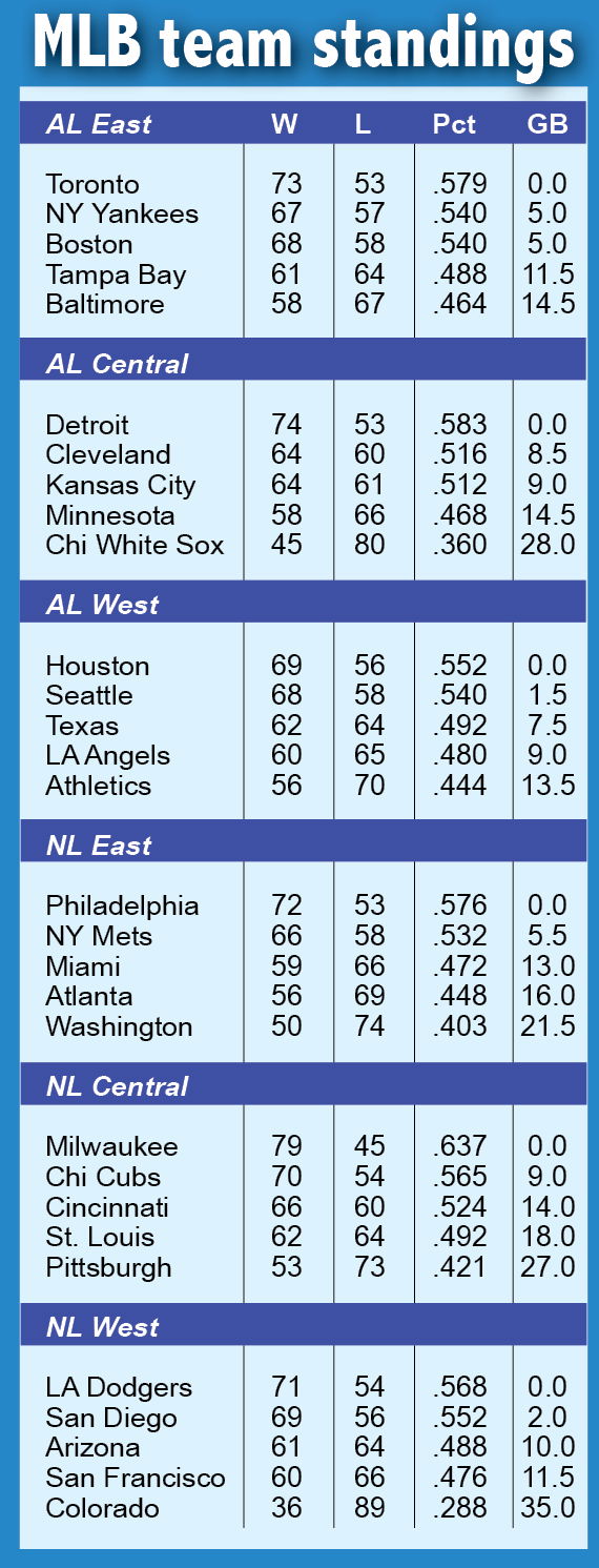 Los Angeles went back ahead in the sixth when Freeman drew a leadoff walk, stole second and scored on pinch hitter Alex Freeland’s two-out double to center.