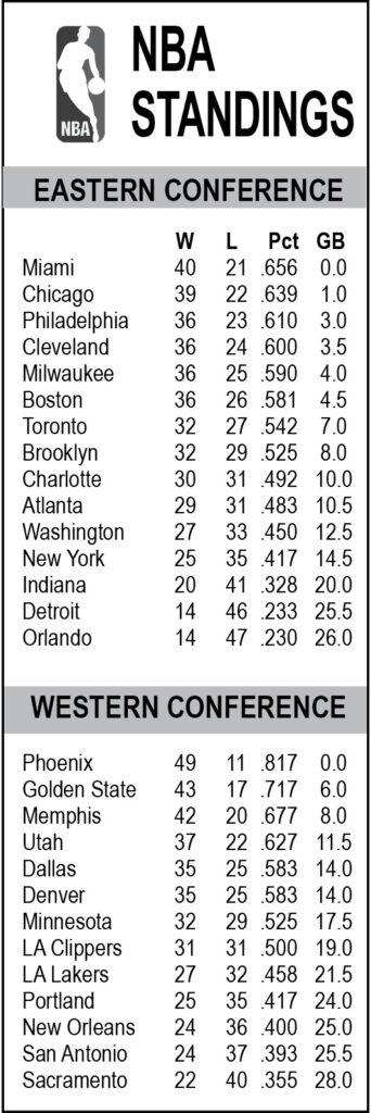 Jimmy Butler and Herro added 27 points each, with Herro recording his 21st game with 20 or more points off the bench this season, tops in the league. Kyle Lowry recorded 13 points and 10 assists for Miami, which leads the Eastern Conference, has won three games in a row and eight of its past nine.