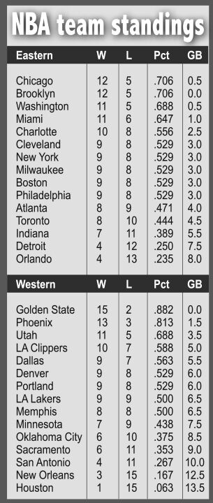 The Suns’ winning streak is the longest in the NBA and the franchise’s best run since winning 17 straight in 2006-07 to 12 games. The loss marked four straight for the Nuggets, and the third during the skid by a double-digit-point margin.