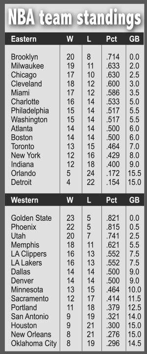 Orlando’s losing streak reached six games, while the Magic dropped to 2-9 at home. Terrence Ross had 18 points and a career-high eight assists and Moe Wagner chipped in a season-high 19 points off the bench for Orlando, while starting guard R.J. Hampton hit three triples and scored 15 points.