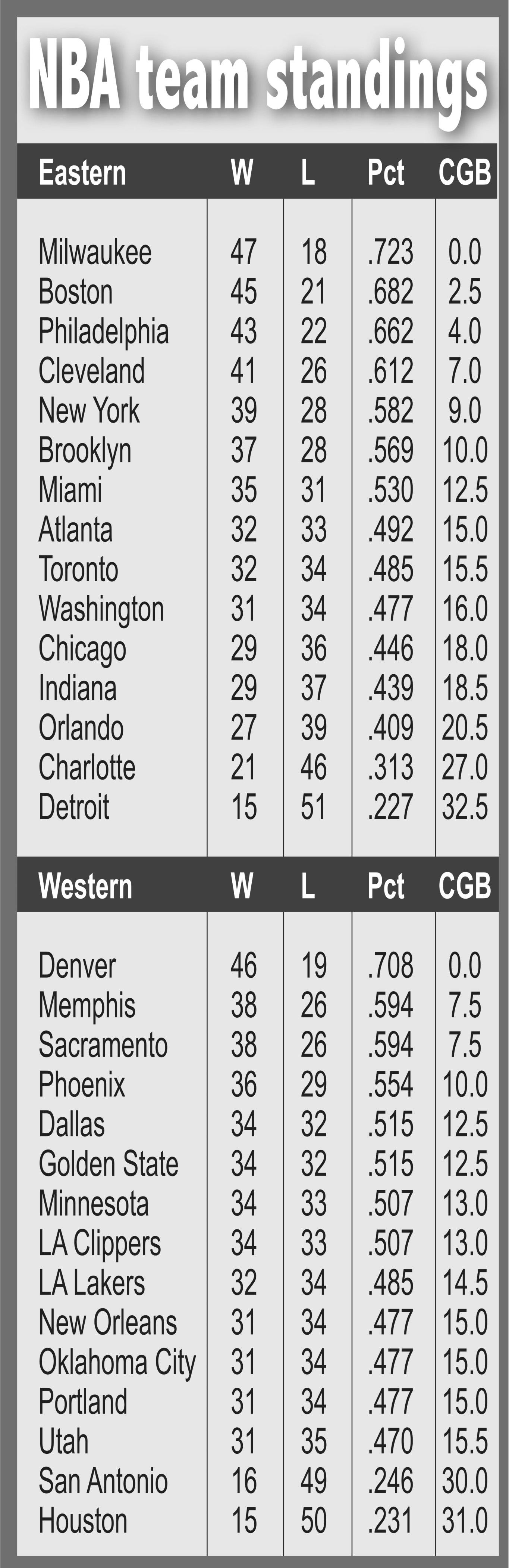 Houston had its modest two-game winning streak snapped. Jalen Green led the Rockets with 25 points while Alperen Sengun added 16 points and 12 rebounds but had four turnovers. Jabari Smith Jr. finished with 15 points and eight rebounds for the Rockets, who gave the ball away 19 times.