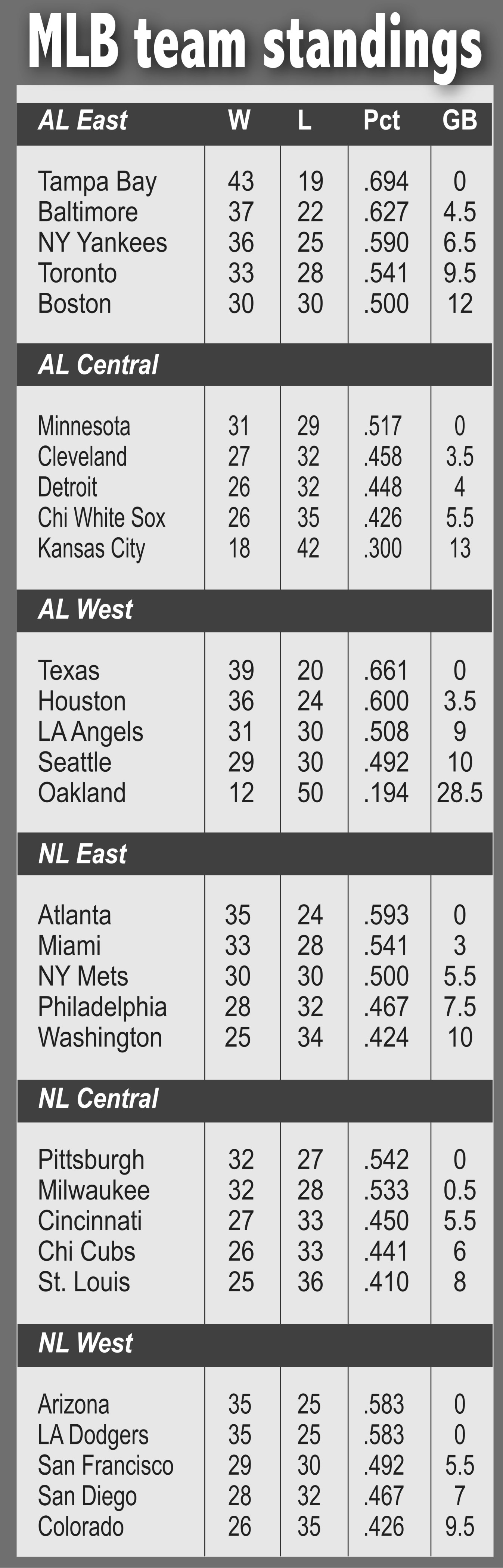 The 15 straight defeats away from home matched the Athletics’ record since they moved from Kansas City in 1968. Oakland set that mark in 1986. The major league-worst Athletics (12-50) have lost five games in a row overall. They are on pace to finish the season exactly 100 games under .500 at 31-131.