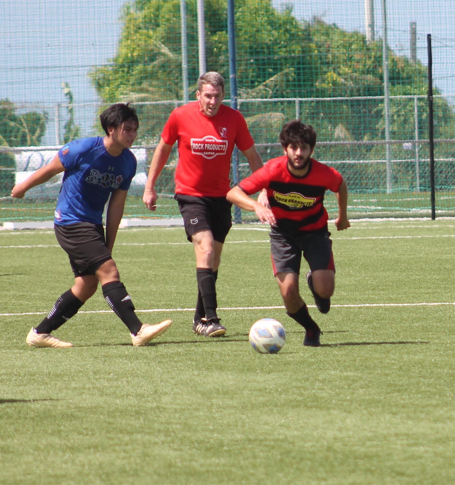 Paire Football Club’s Eric Baratas dribbles forward during a Men’s M-League Spring 2021, Division A game on Sunday at the NMI Soccer Training Center.