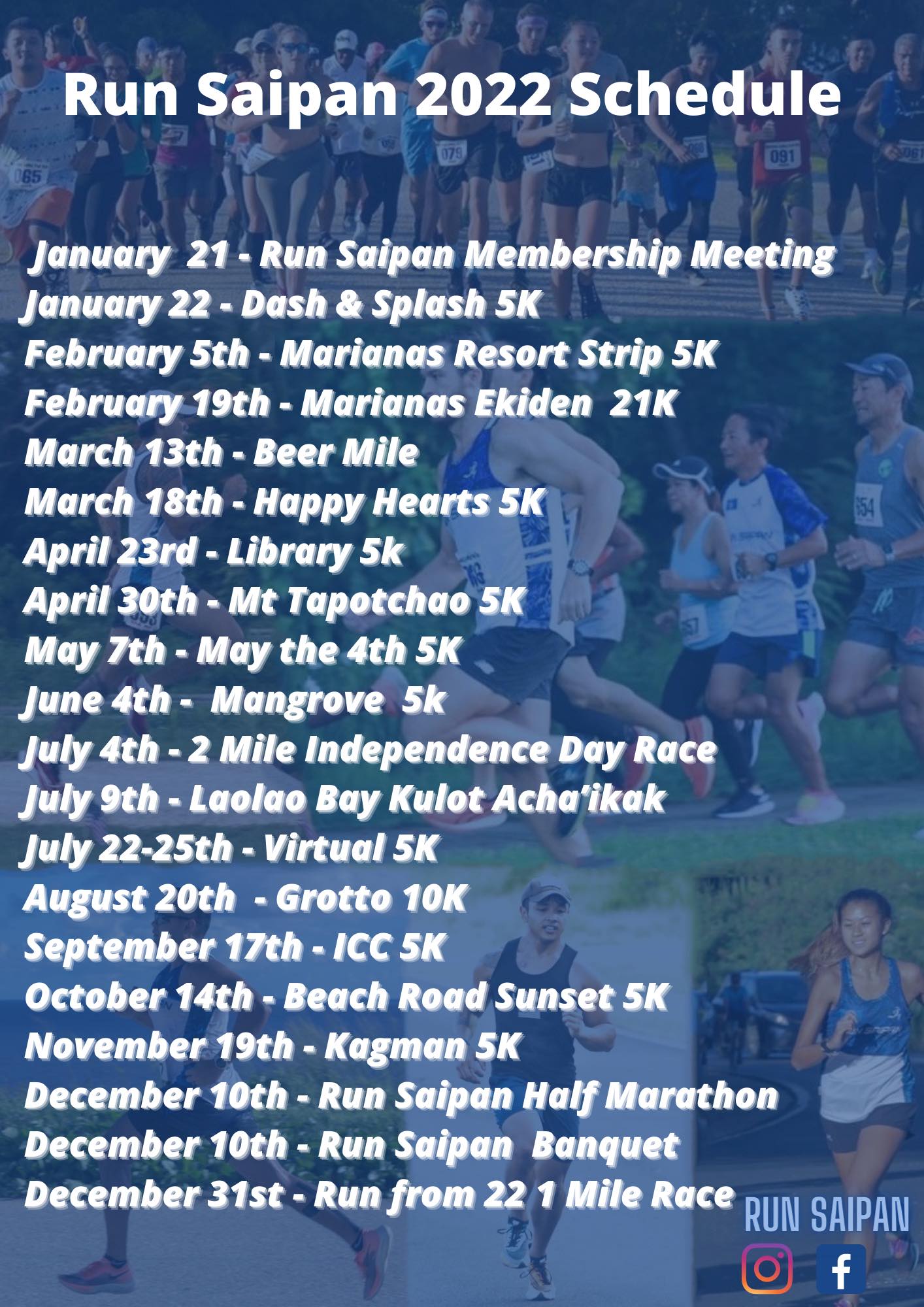 According to Run Saipan’s 2022 calendar, the first event of the year is the Dash and Splash 5K set for Jan. 22.