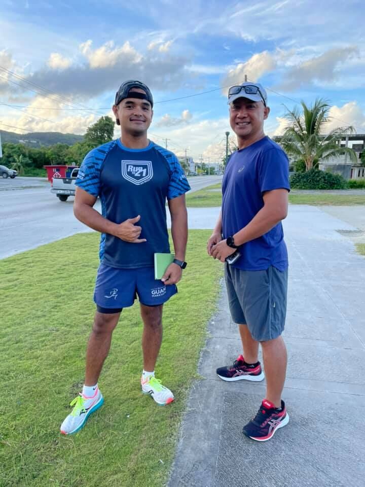 Run Saipan president Edward Dela Cruz Jr and Northern Marianas Athletics secretary general Robin Sapong pose during last year's virtual Ekiden Relay.