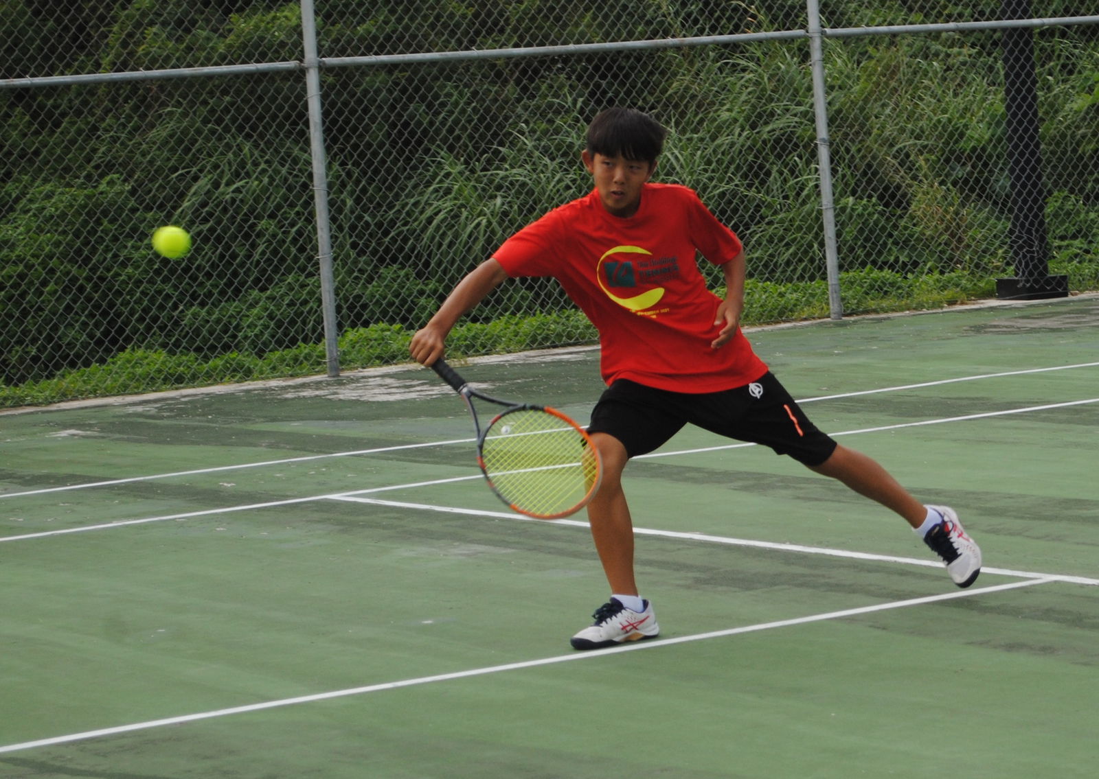 The NMI’s Siwoo Lee extends for the backhand return during a tennis tournament at the American Memorial Park tennis court in this file photo.  Lee has secured a spot in the semifinals of the U14 Boys Singles event of the 2023 North Pacific Regional Championships after defeating fellow NMI player Taher Shakir, 6-1, 6-2, Thursday on Guam. Lee will face Nason Wessel, also of the NMI, today, Friday, in a semifinal match.
