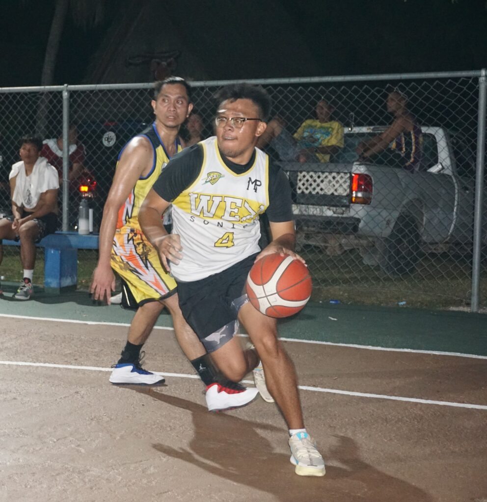 The Game’s Christian Bravo dribbles past a defender during an open division game of the Saipan Centennial Lions Club Invitational Basketball League at the Civic Center basketball court on Wednesday.