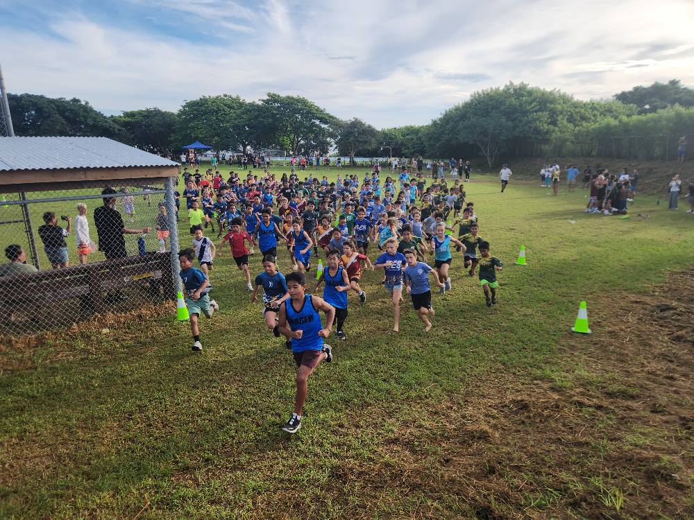 The elementary school division runners take off during the 4th meet of the PSS-NMA All-School Cross Country Series SY24-25 at Kagman Elementary School on Saturday morning.