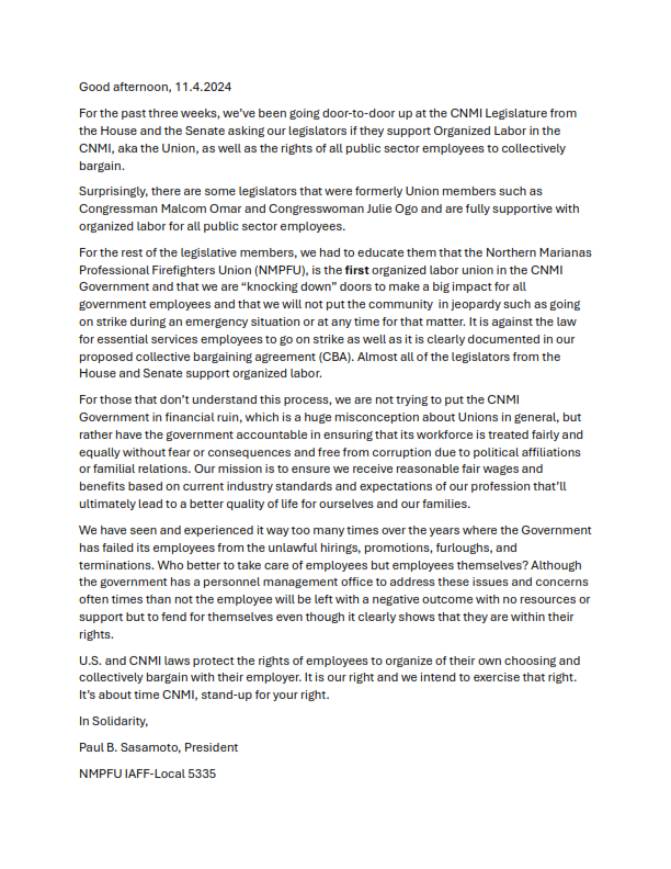 DEAR CNMI Community: From the recent article, concerning austerity. If you’re not aware, the CNMI government austerity measures target locally funded employees. Cutting hours or pay, can have several consequences and highlight disparities, particularly when federal funded employees remain unaffecte…